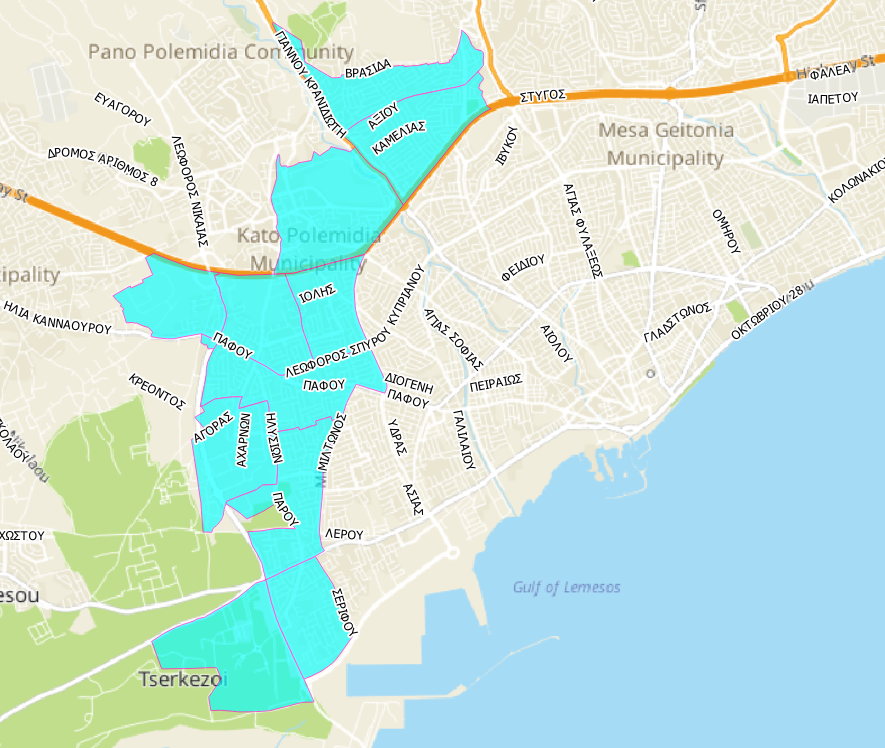 Για τον μήνα Νοέμβριο, οι εργασίες εγκατάστασης θα πραγματοποιηθούν ενδεικτικά στις πιο κάτω περιοχές, οι οποίες φαίνονται στο χάρτη με γαλάζιο χρώμα: