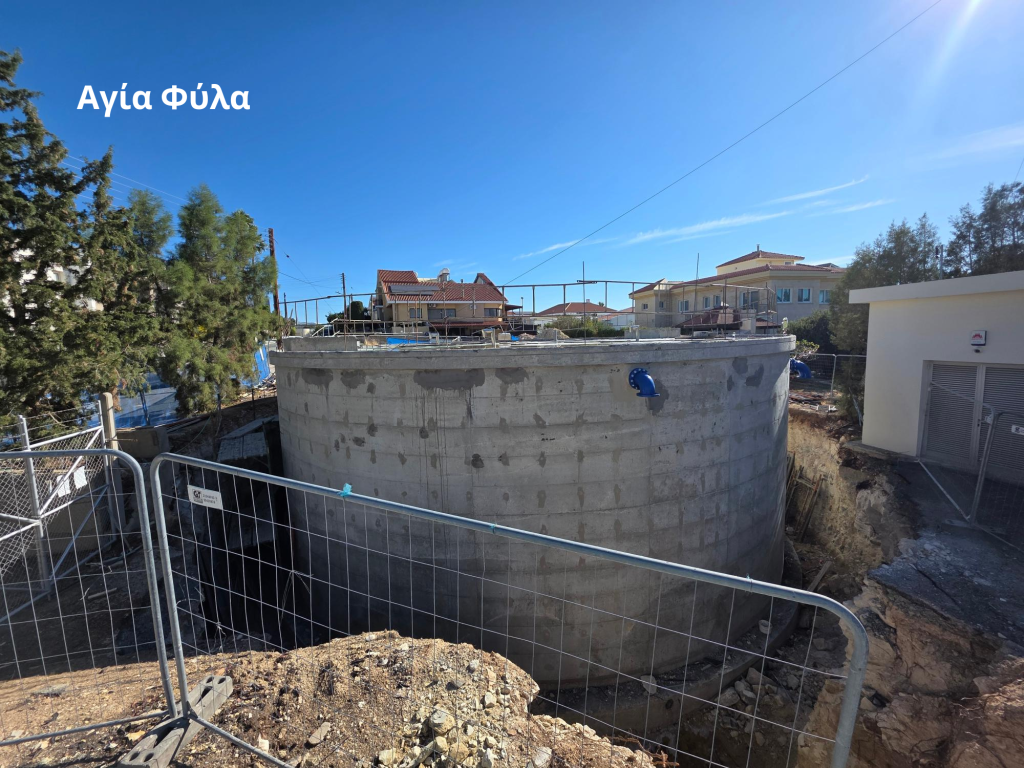 Έχουν ολοκληρωθεί οι εργασίες κατεδάφισης των δύο (2) παλαιών Δεξαμενών στο τεμάχιο. Έχει επίσης ολοκληρωθεί η κατασκευή του σκελετού της Δεξαμενής. Το Έργο βρίσκεται στη φάση τοποθέτησης των εξωτερικών διασωληνώσεων και των υδραυλικών εξαρτημάτων.