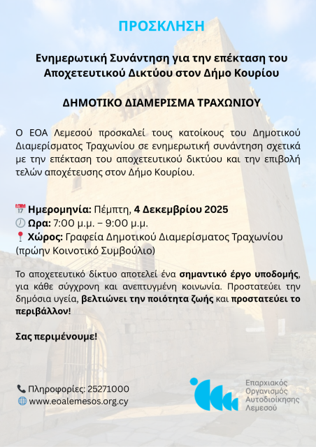 Δημοτικό Διαμέρισμα Τραχωνίου - Ενημερωτική Συνάντηση για την επέλταση του Αποχετευτικού Δικτύου στον Δήμο Κουρίου