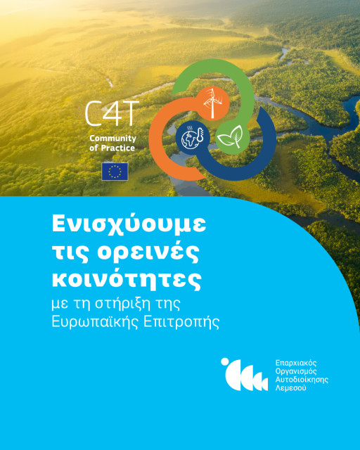 Ο Επαρχιακός Οργανισμός Αυτοδιοίκησης (ΕΟΑ) Λεμεσού καταγράφει μια σημαντική ευρωπαϊκή επιτυχία, εξασφαλίζοντας τεχνική βοήθεια από την Ευρωπαϊκή Επιτροπή (DG REGIO) στο πλαίσιο της πρωτοβουλίας Cohesion for Transitions (C4T). Η στήριξη αφορά την ενδυνάμωση των ορεινών κοινοτήτων της Επαρχίας Λεμεσού και την προώθηση βιώσιμων επενδύσεων στη διαχείριση των υδάτινων πόρων.